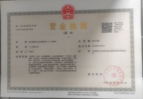 清水新颐文化交流事务所,成立于2025年7月,是经政府市场监管机构批准的合法单位。